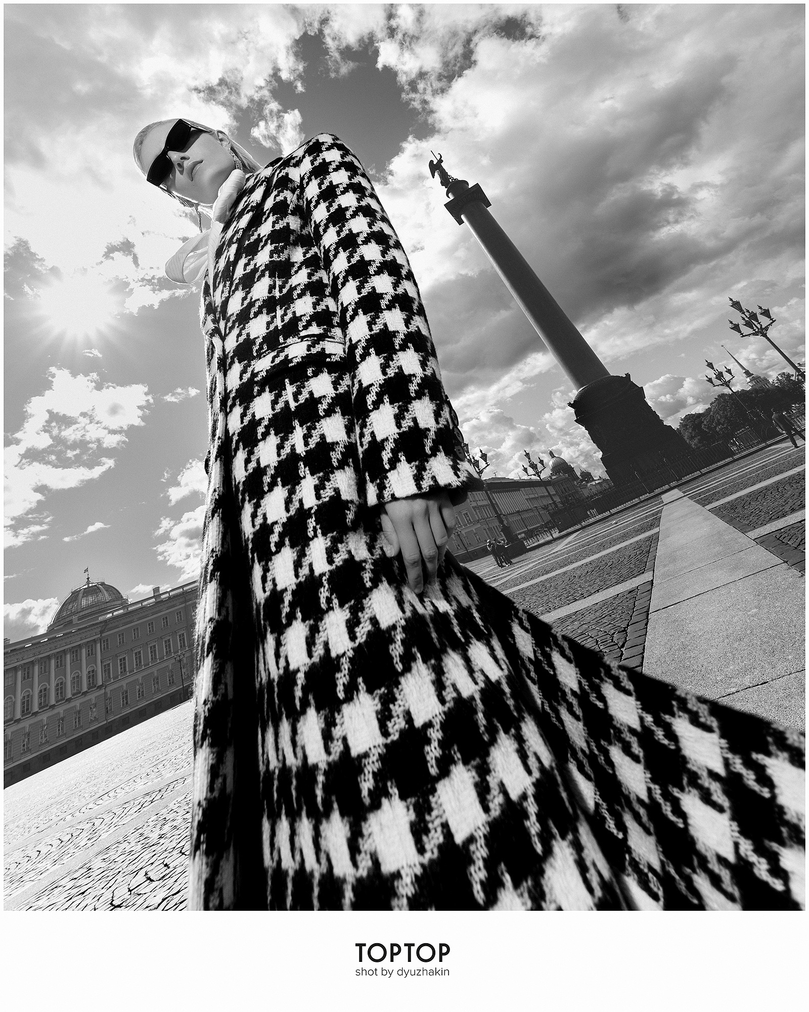 Задача на креатив: сделать съемку для бренда TopTop, так, чтобы было хорошо видно одежду, и была нестандартная композиция кадра.